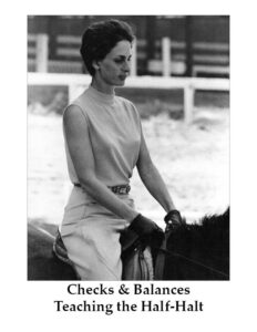 The Half-Halt in Canter. Applying the half-halt in canter provides a unique opportunity for the rider to synchronize with the horse’s rhythm. The moment in the stride when the horse pulls the rider deepest into the saddle is the moment when the rider can apply a half-halt. The horse will affect its own half-halt as well as the next moment of relaxation. The canter is a good teaching tool to bring the rider into the rhythm of the two phases of the half-halt….Read More